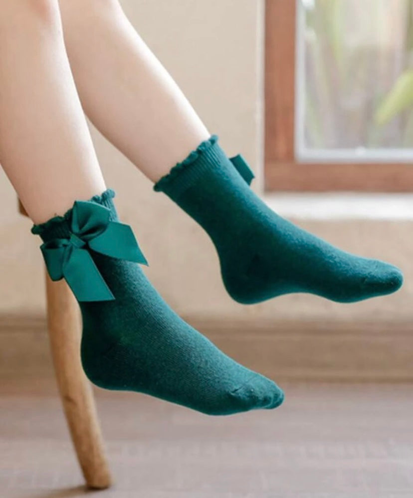 A vibrant green color and bow detail make these socks the perfect addition to any outfit for the holidays season.