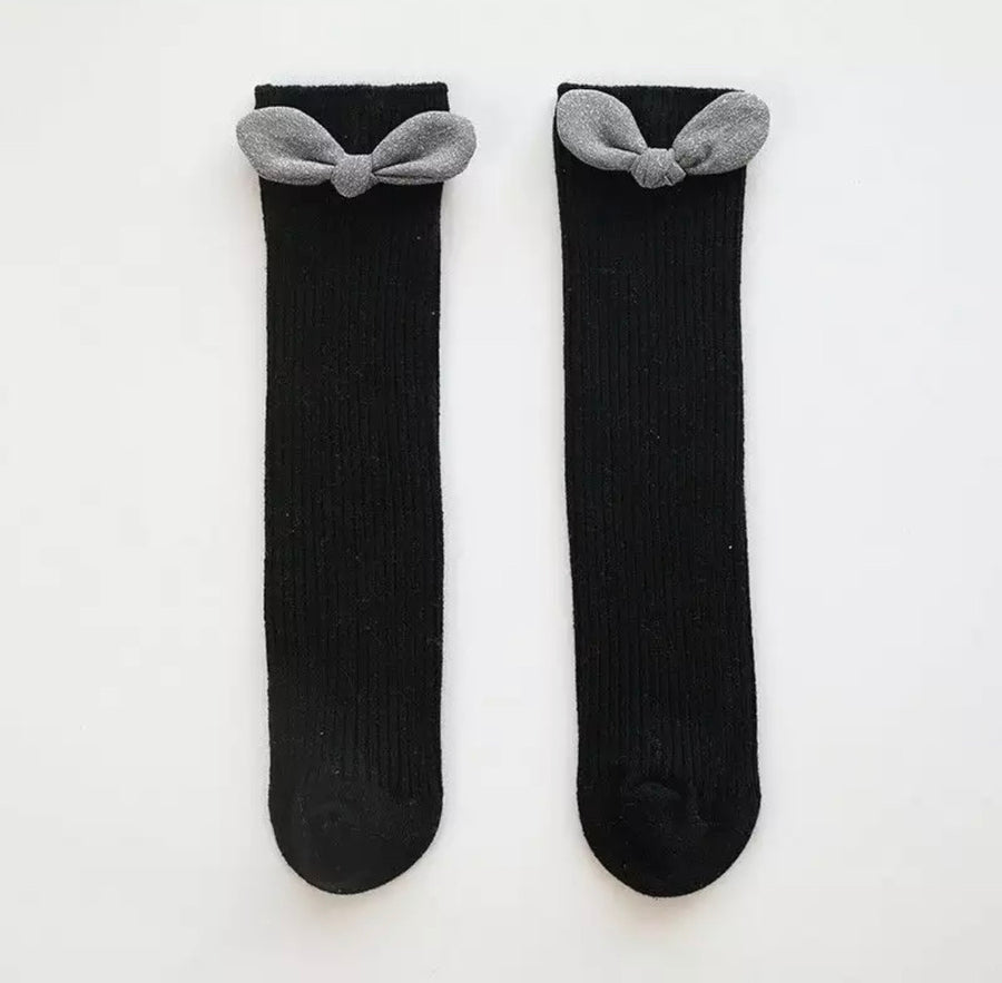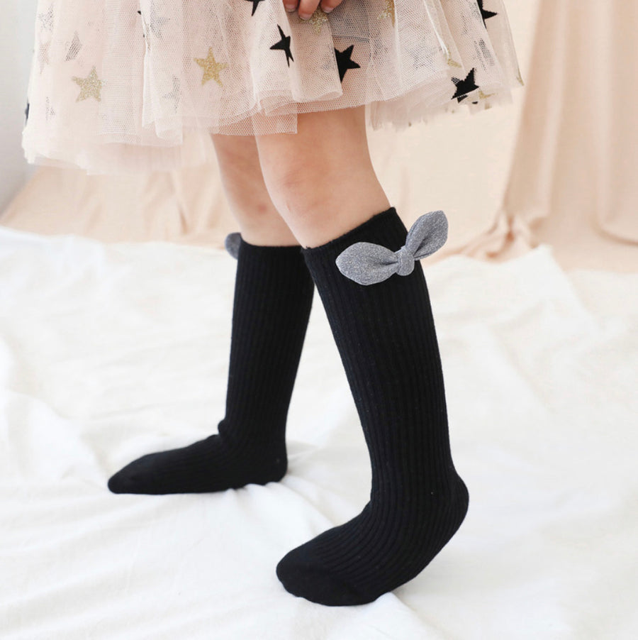 Shimmer Bow High Cotton Socks